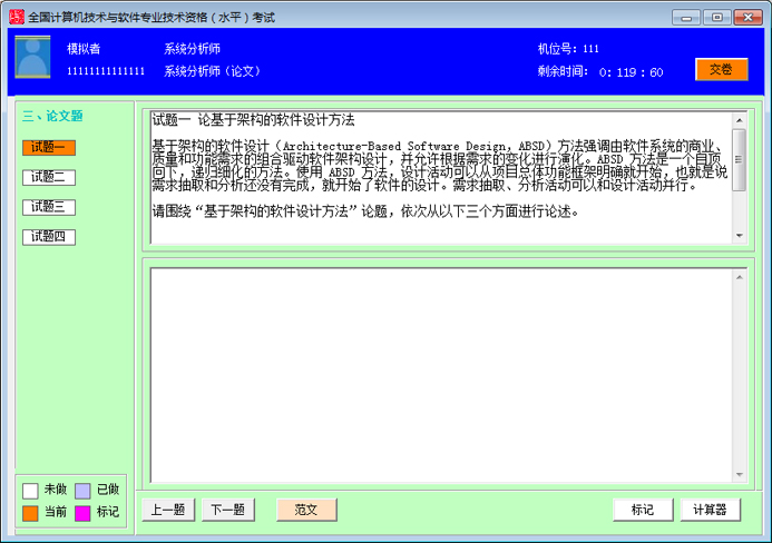 软件名称: 软考高级《系统分析师》全真模拟考试系统